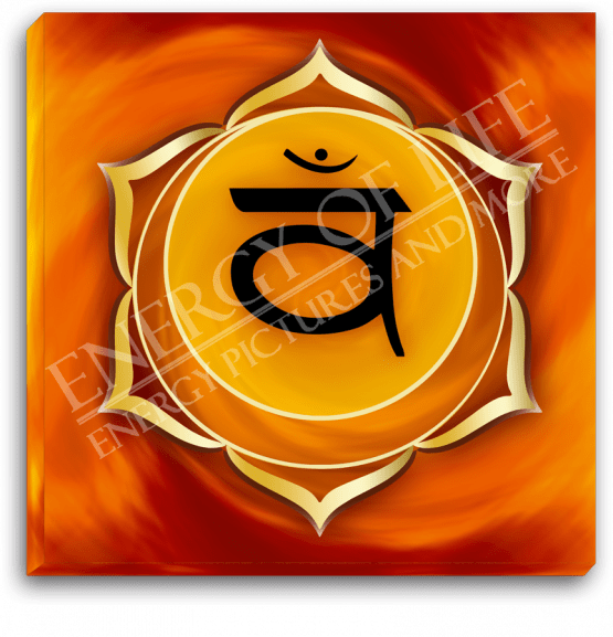 Dieses Bild beeinflusst durch seine Farbschwingung und die energetisierende Wirkung des uralten Sanskrit-Chakra-Symbols unser Sakralchakra und die zugehörigen körperlichen und geistigen Bereiche.