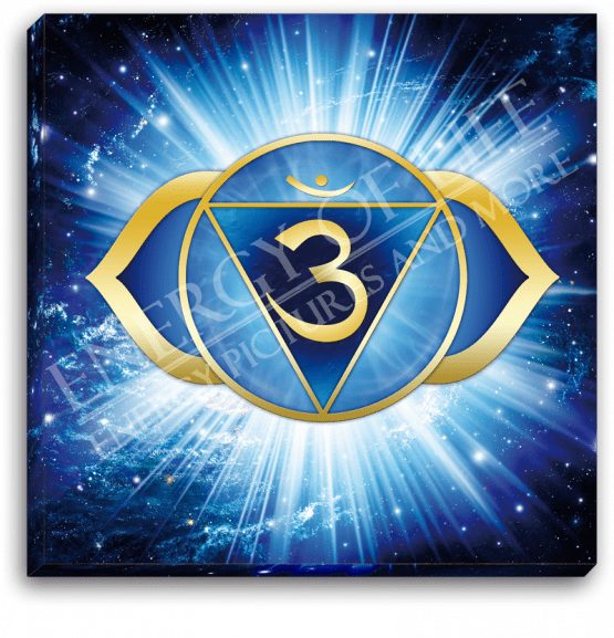 Dieses Bild beeinflusst durch seine Farbschwingung und die energetisierende Wirkung des uralten Sanskrit-Chakra-Symbols unser Stirnchakra und die zugehörigen körperlichen und geistigen Bereiche.