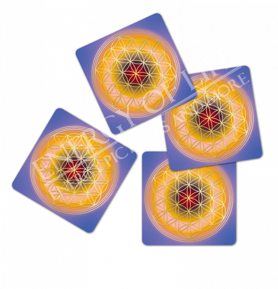 Die unterschiedlichen Farbschwingungen der Untersetzer gleichen zugleich auch gefühlsmäßige Ungleichgewichte aus. Ideal auch zum Auflegen in der Heiler-Arbeit.